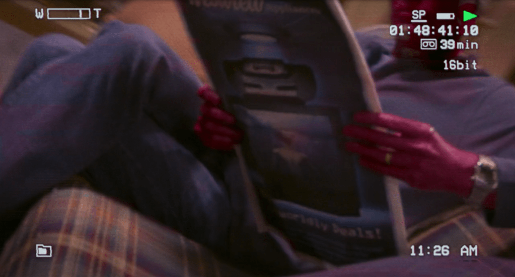 Another couple creative inferences in this scene are perfectly executed once Pietro joins the twins in pranking all of Westview at super speed. We see one of my favorite characters, David Payton’s Herb dressed up like Frankenstein. I would tell you that High Evolutionary will end up looking like that in the comic but I promised to let that theory go… for now. As Herb’s dialogue with Wanda is interrupted by a complaint call that stranger things are happening, we see a flash of an image: Quicksilver smashing pumpkins with the twins. This is just out my head, and would be miraculous if it had anything to do with the production team’s intent but… the band, Smashing Pumpkins’ 2018 Halloween single, Silvery Sometimes (Ghost) came to mind. The band is actually in the video watching themselves on TV. The chorus of the song repeats, “We’re in the middle, we’re in the middle, Ghosts”. Being that this episode is the “Malcolm In The Middle episode”, I had a lot fun connecting those dots. How crazy was that? I’ll take it one more level deeper. Billy Corgan, lead singer of The Smashing Pumpkins co-wrote The Hole’s single, Celebrity Skin that appeared in the Marvel Studios movie, Captain Marvel, along with their album poster for Mellon Collie and The Infinite Sadness; which is what Wanda is feeling this whole time (melancholy & infinite sadness). (Like how I brought that full circle? LOL. Wait until the YouTube channel is officially launched!) All of this happens in a blink of an eye. Wanda realizes Vision lied to her about the neighborhood watch. Herb asks Wanda if she ‘wants anything changed’ which totally blows my mind because this means Herb is different than the majority of the people in Westview; we just don’t know how or why yet.