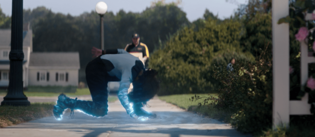 Having succeeded before, Monica is determined and convinced that she can get back into the Hexus. She pushes through the field and we see multiple versions of her struggling to make it out of the other side in a beautiful display of light. Once through, we know she is changed. Voices of her mother, Maria, Jimmy Woo, Dr. Harley, her “Auntie Carol” & Nick Fury help her make it. Her eyes become bright blue and her point of view is remarkable. When looking through Monica’s eyes we see her perception of the electromagnetic spectrum. The waves from the electric lines look like spiders to me; easter egg! Whether it be a nod to Monica’s first appearance being in The Amazing Spider-Man Annual #16 (1982), some form of spider-sense or a sign that we may see her in the newly titled, Spider-Man: No Way Home, I see the connection. (Pun king! LOL) Monica runs to confront Wanda. By Wanda’s reaction to Monica’s arrival back in her house, I don’t think The Hex wall is solely Wanda’s construct. How did she not know Monica made it through? Monica clearly states that this whole thing is about Vision. Wanda doesn’t listen (and neither do the majority of viewers). She blames Monica for what SWORD did to Vision, the drone missile strike and the fake Pietro. Wanda tries to throw Monica around like she did before but “Monie Love got a new thang”. LOL. Monica’s energy absorption seems to be the first of her incredible power set to kick in. Deflecting Wanda’s attack, Monica performs her first 3 point superhero landing. Her powers are depicted like energy bangles around her limbs. I think it’s ingenious. The look on Wanda’s face is priceless. It reminds me of a bully that realizes they picked the wrong one to harass. Monica shows a little “Sista Souljah” when she pushes back against Wanda’s accusations. Monica has almost gotten through to Wanda, who is on the fence about whether she is good or evil. Agnes intervenes and takes Wanda into Casa de Harkness.