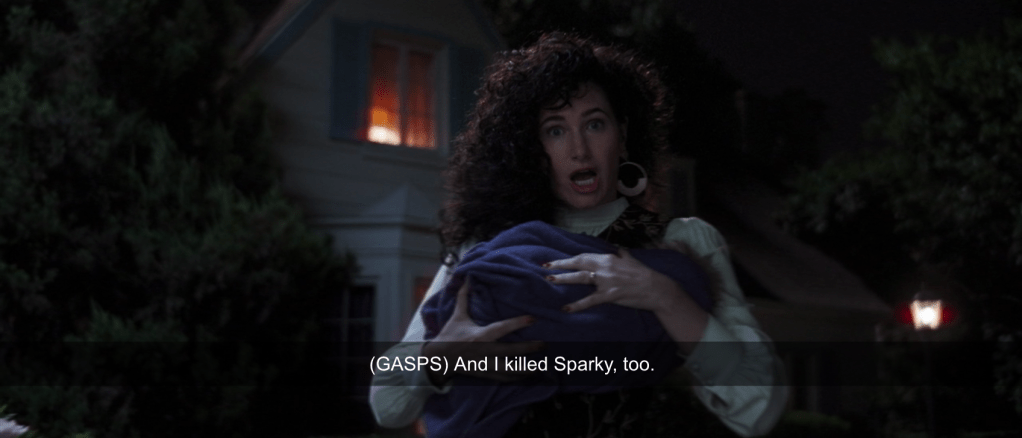 Agatha’s eyes turn purple (which is a color attributed to Shuma Gorath). She conjures a spell that gives Wanda a vision of all the things that have been happening behind the scenes of The WandaVision Show. Agatha’s theme music is brilliantly similar to The Adams Family theme song. We see Agatha land on Wanda’s street corner and change from witch to neighbor for Ep.1. Agatha is behind the mishaps at the magic show in Ep.2. She casted a spell on Herb in Ep. 3. She’s behind “Pietro” showing up on Wanda’s door step in Ep. 5. She faked being under the hex to trick Vision into rushing out of The Hexus for help. I knew Wanda was the star of the show and maybe even the director but Agatha seems to have been the showrunner all along! To add insult to injury, she lets us know how evil she is by admitting that she killed the twin’s dog Sparky; just like a thought! (She loves feeding leaves to animals! LOL)