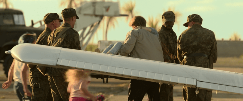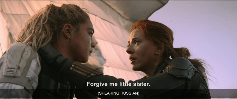 As night turns to day and the sky turns into the air strip in Cuba, the sense of escape & freedom lingers like a fragrance long enough to hear my own thoughts clearly for a moment. All I could think about as I watched this transition was, “Did Alexei just ride on the wing of the plane for the whole trip?!?”. And it looks like he did! It looks like there may have been an astronaut’s sleeping bag (or something) strapped to where Alexei would have been. This could have been used to keep him warm as well as add to Alexei’s love for building the legend of The Red Guardian. Here is another minute detail with an obvious omission of information. Whether my imagination took over or the film’s creative team was just that thoughtful, I took this to mean that Natasha Romanova flew a plane from Ohio, USA to Cuba at 11 years old in 1995. She thereby saved 4 lives; including her own. I learned (in my reading) that one of those lives was a character that was married to Black Widow in the comic book mythology (Red Guardian) and ironically a pilot, even though he is never shown flying a plane in the movie. Here, instead of the dutiful husband, we learn that he is the immoral & disgraced spy for the infamous Dreykov, leader of The Red Room. We learn that the girls are just pawns to be drugged & used however these powerful adult males see fit. We learn that the destruction of North Institute was imperative for Dreykov’s plans; but why? We learn that Melina survived her wound and that Natasha was able to disarm a Soviet soldier at 11; but unable to kill a man yet. We learn all of this in the first 13 minutes of the movie, which is almost the exact time it takes before the movie title and intro appear. This introduction to the first act is a brilliant summary & tease to a story that won’t be told in this movie. The imagery of little girls imprisoned & kidnapped in shipping containers while the song, “Smells Like Teen Spirit” by Think Up Anger ft. Malia J changes the whole vibe of what we had been watching so far. This was the toughest scene for me to watch.