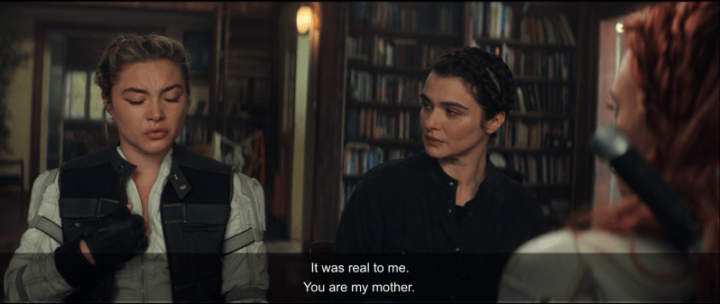 The family reunion at Melina’s dinner table fed my theory by giving us her explanation of the North Institute mission in Ohio and some of the fruit of the spoils. This,Yelena’s emotional line, “The best part of my life was fake and none of you told me?” and speech about how her spy family was the realest part of her life were two of my favorite moments of the whole movie. I felt my first human connection to Yelena’s character in that moment. Melina’s line, “The world works on a higher level when it is controlled.” gave me chills as we all feel less control over our lives due to the COVID-19 pandemic. The idea that people actually think like this is a terrifying prospect that we as free people must fight against. I am very happy that Kevin Feige made sure this scene made the cut. Melina tells Nat, “(Natasha) You weren’t abandoned. You were selected by a program that assessed the genetic potential in infants.”