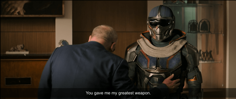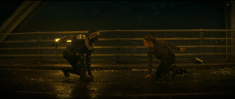 Besides the dreamcatcher on the living room wall everything looked like it could have been a home of one of my Russian or Armenian friends; especially with all the vodka in the dining room. Young Yelena’s innocence & excitement set us up well for the gut wrenching drama & action that is to be the escape from North’s SHIELD/Hydra agents. David Harbour (Alexei Shostakov) enters the movie unassumingly tucking one of the two major macguffins (in this film) into his shirt; North Institute’s secret research files on a floppy disk. Once established as the father figure of the family he steals the majority of the scenes he is in, in my opinion. It was an utter joy to watch him bring so much character & humor to his morally inept role, much like Chris Hemsworth has parodied his role as Thor. I kinda like the comedy from Alexei more out the two.